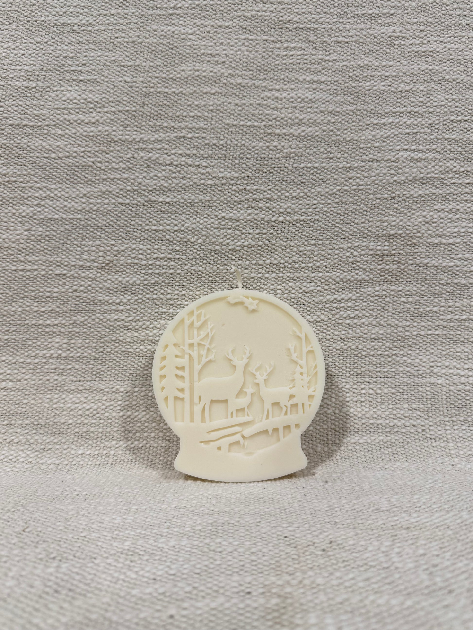 Plongez dans l’enchantement de l’hiver avec notre bougie artisanale en forme de boule à neige, sublimée par la scène féerique de cerfs majestueux au cœur d’une forêt enneigée 🌲🦌. Un véritable chef-d’œuvre alliant art, lumière et poésie, parfait pour créer une ambiance magique et apaisante dans votre intérieur.